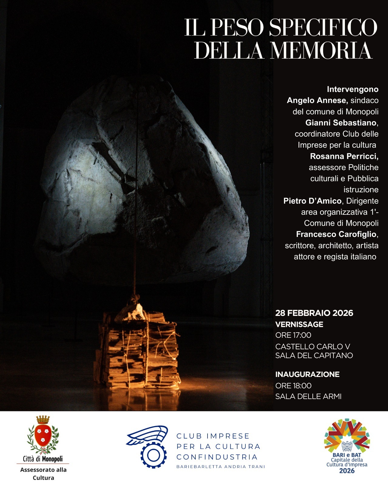Per il Comune di Monopoli, l’evento rappresenta un ulteriore tassello nella valorizzazione del Castello Carlo V come luogo identitario e spazio di elaborazione culturale contemporanea, capace di coniugare storia e sperimentazione artistica.