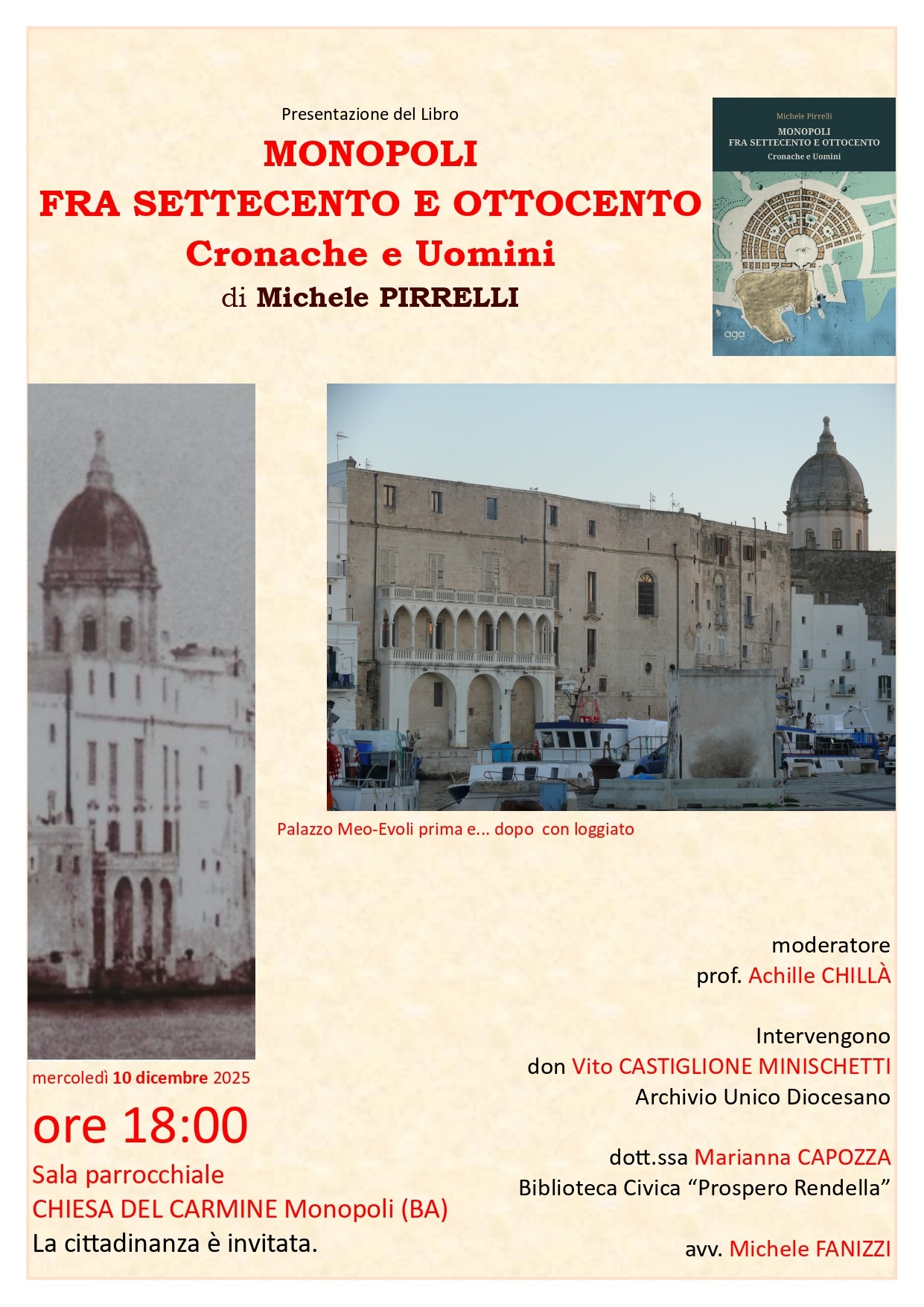 Mercoledì 10 dicembre 2025 ore 18:00 Sala parrocchiale Chiesa del Carmine Monopoli (Ba)