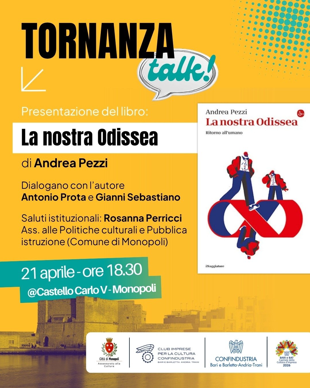 Martedì 21 aprile alle ore 18.30 al Castello Carlo V di Monopoli il nuovo appuntamento di Tornanza Talk.